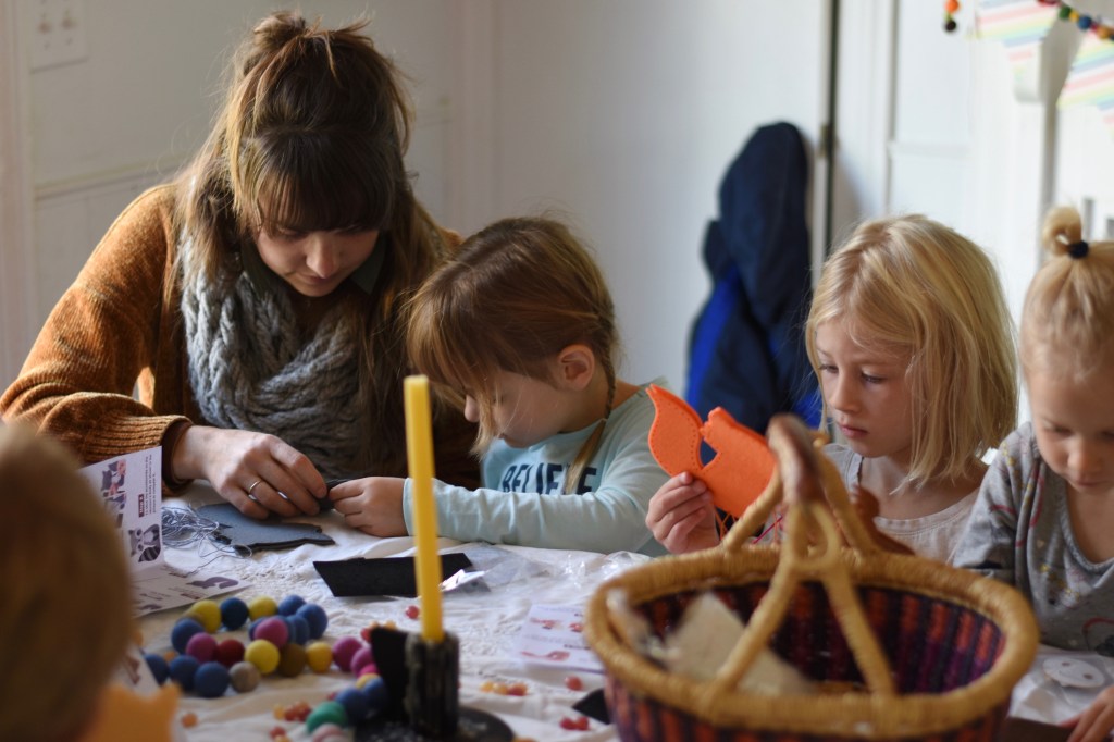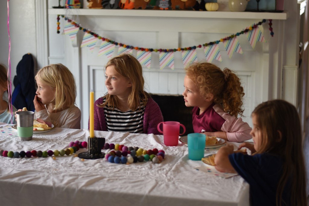 With the arrival of Philippa’s birthday the busy season begins. I’m not much for busy and try to minimize it as much as possible, yet with young children it can’t be avoided entirely. I was grateful that there were a few days between Philippa’s birthday and Thanksgiving this year so I uncharacteristically felt up to attempting a very small birthday party. Usually I just don’t have the bandwidth to add that in but I’m glad to have made space and energy for it. Philippa invited two dear friends and her cousin bff and we had a small little gathering with family and friends. My plans to keep things relatively calm went well largely due to the fun sewing craft we did. I found this sweet woodlands animal sewing craft for the girls to do. Everything came ready to go with instructions for each creature. I had hoped to do this set with the ulterior motive of ending up with some pretty felt ornaments for our Christmas tree, but Brandon talked me out of it since they were geared toward ages 12 and up. I think the one we picked was really good for 5-6 year olds, and my older two enjoyed participating, too!