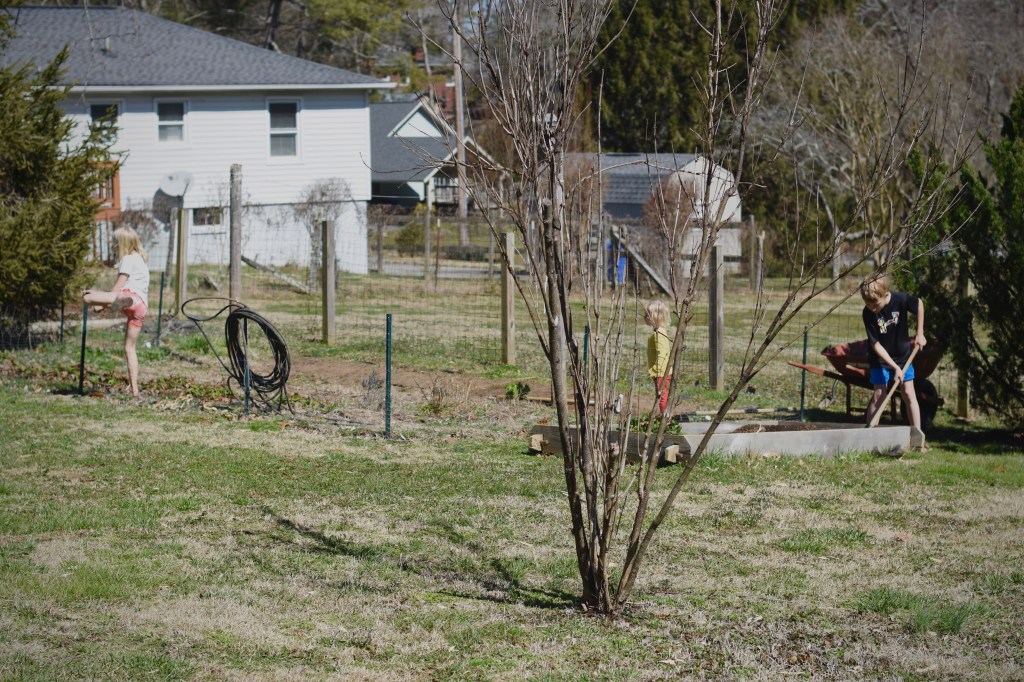 Brandon works on clearing a space for a fire pit so we can dismantle the junky cinderblock fire pit that has been in the middle of our yard since we moved in. We still need to work on the fire pit in the center but it is already such a huge improvement!