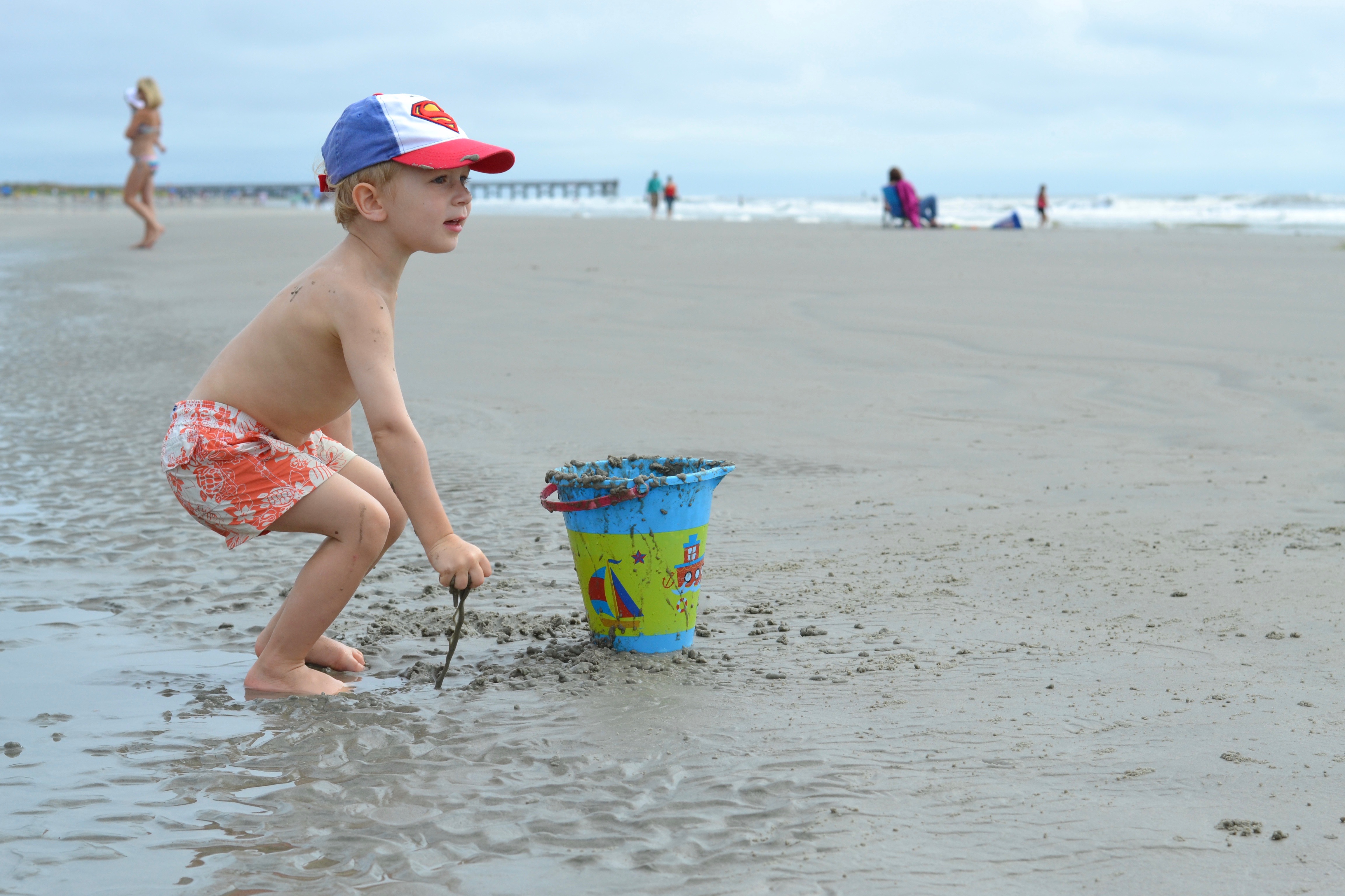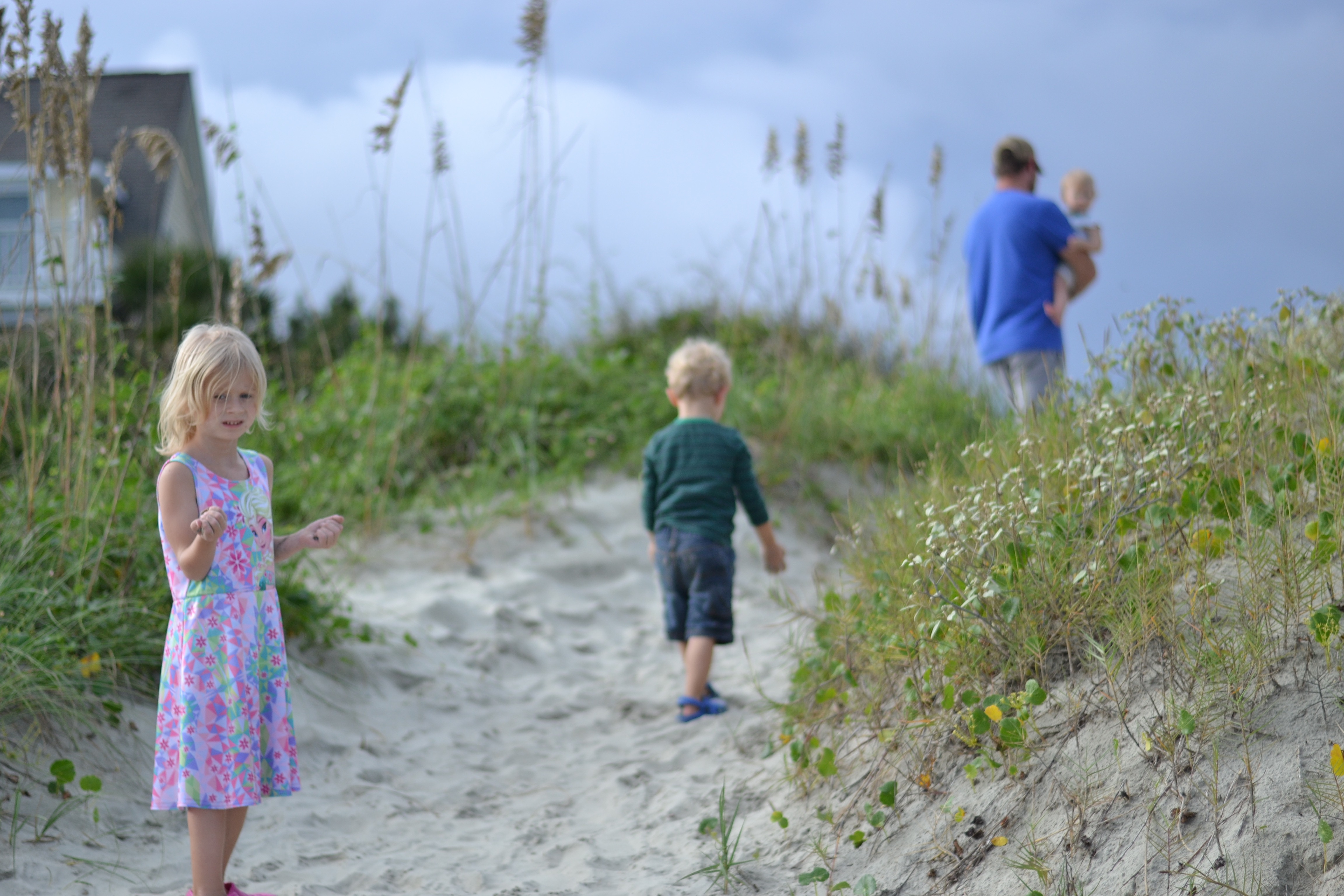 It seems necessary when visiting the beach to have at least one cloudy chilly beach day, and we had a lovely one on our last full day. We drove to nearby Sunset Beach on the tip of North Carolina and we loved watching the deer wandering on the dunes, and the wild stretch of the nature preserve on Bird Island. Though the kiddos began with complaints and assured us they wouldn’t want to get in the water, before long the shirts came off and they couldn’t resist running through the waves with laughter.